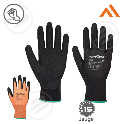 Gant Dermi-Grip NPR15 Nitrile Sablé PORTWEST (A335) – Lot de 12 paires