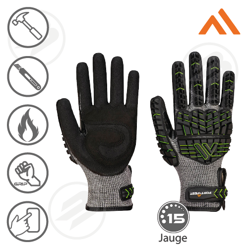 La conception innovante en TPR combinée à une doublure de coupe de niveau F en fait un gant d’impact offrant une dextérité, un confort et une protection exceptionnels. La doublure respirante de calibre 15 assure une dextérité exceptionnelle au porteur. Enduction en mousse de nitrile pour une excellente adhérence dans des conditions humides et sèches. Des paumes rembourrées extérieures/intérieures pour une durabilité et un confort accru. Un renfort entre le pouce et l’index. Convient aux appareils à écran tactile. Conçu spécifiquement pour l’industrie pétrolière et gazière.