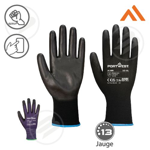 Gant PU compatible avec écran tactile PORTWEST (A195) – Lot de 12 paires