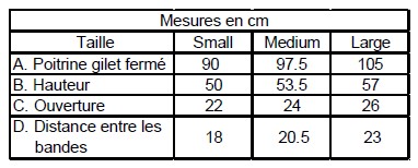 Tissu extérieur : 100% Polyester Tissage en chaîne 124g