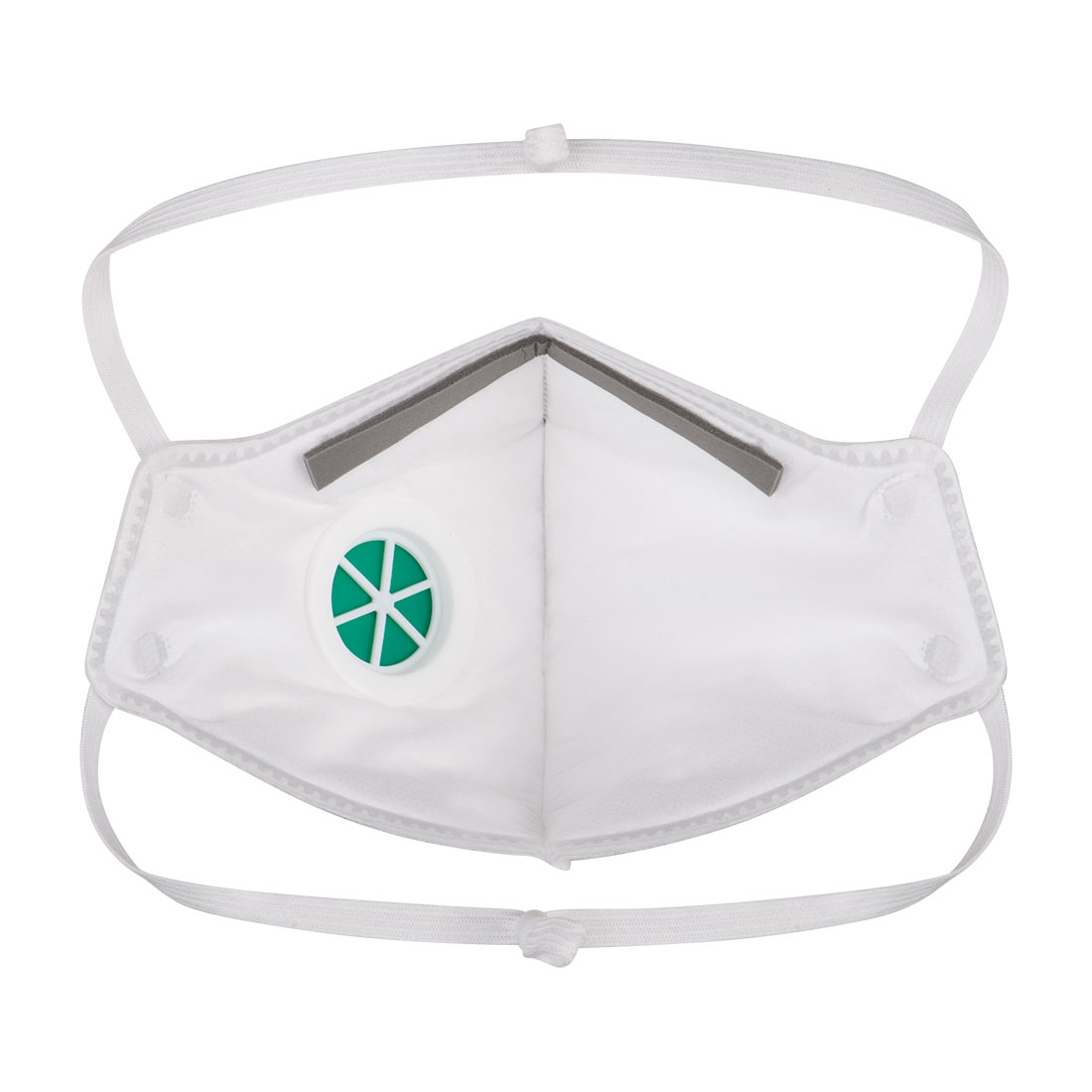 Un masque FFP3 pliable à soupape plié à plat vertical. Chaque masque est placé à l’intérieur d’un poly-sac individuel pour un rangement plus facile. Valve d’expiration pour une résistance expiratoire moindre. Pince-nez et bascule réglables pour un ajustement optimal. Vendu en paquets de 3.