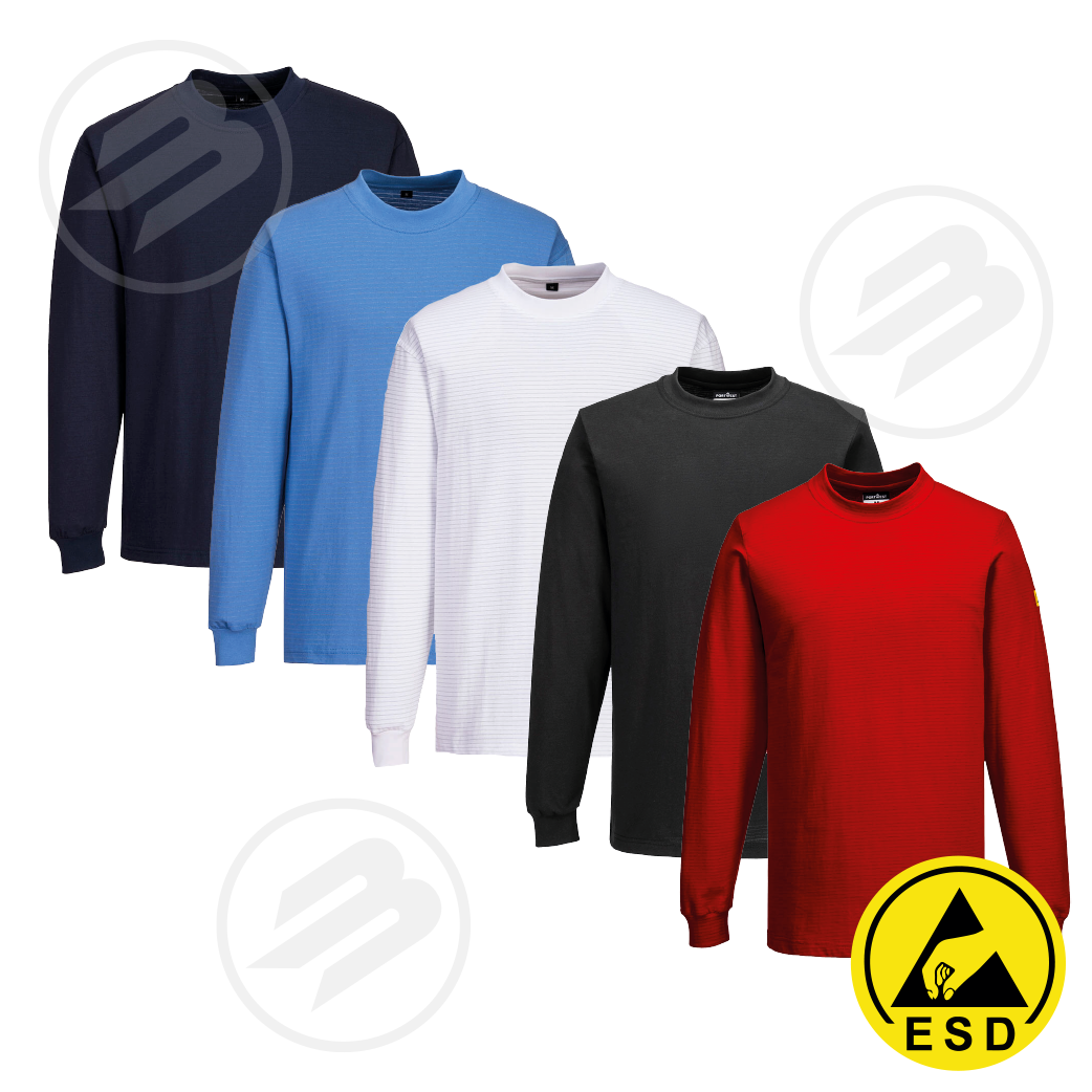 Ce t-shirt de protection à manches longues est léger et confortable. Idéal pour les environnements où la résistance électrostatique est requise. La fibre de carbone tissée à travers le tissu offre une excellente protection antistatique.